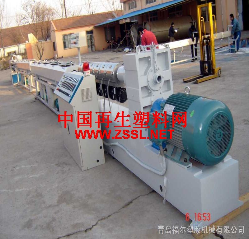 PE/PPR管材生产线主机:1.1单螺杆挤出机 型号: SJ90螺杆长径比: 30:1螺杆直径: ¢90螺杆硬度: HV>740 机筒硬度: HV>940螺杆机筒材质: 38CrMoAIA渗氮处理 螺杆机筒氮化层深度: 0.4-0.7mm螺杆: 38CrMnAl经渗N处理螺筒: 料筒外风机冷却,带风道的铸铝加热圈电机功率: 55kw螺筒加热区段: 5区加热功率: 30w机头加热区段: 3区机头加热功率: 12Kw最大产量: 150~180kg/h1.2减速箱(江阴)基本结构: 卧式安装冷却方式: 外循环冷却系统齿轮材质:20CrMnTi渗碳硬齿面,磨齿工艺处理。整个齿轮箱为高寿命低噪音、低发热的专用减速装置。2、模具: 螺旋机头 一套